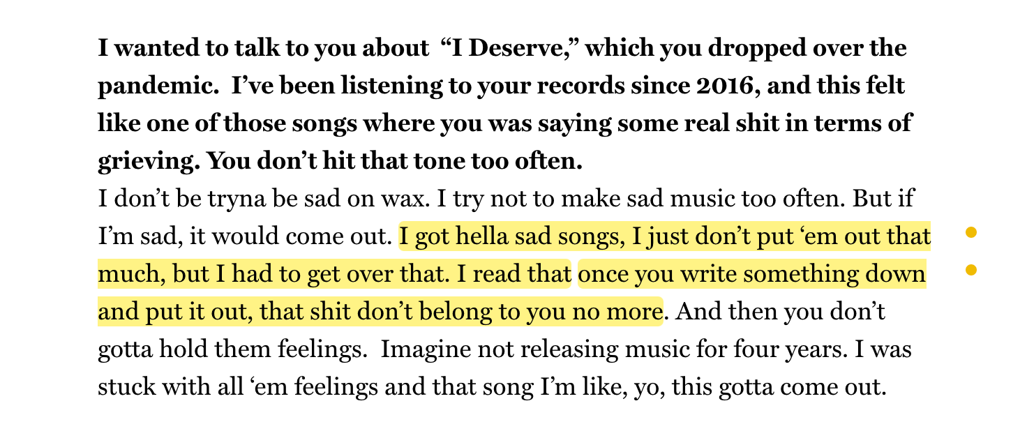 Reframing creative blocks as narcissism is inspiring. Loved discovering the Smino interview!