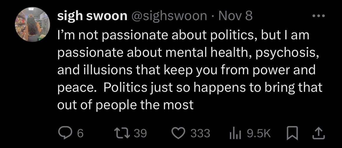 akchually, all art is political. and your choice of not writing about politics is rooted in your privilege of you not being affected by it. this, is the most political post you have ever written.