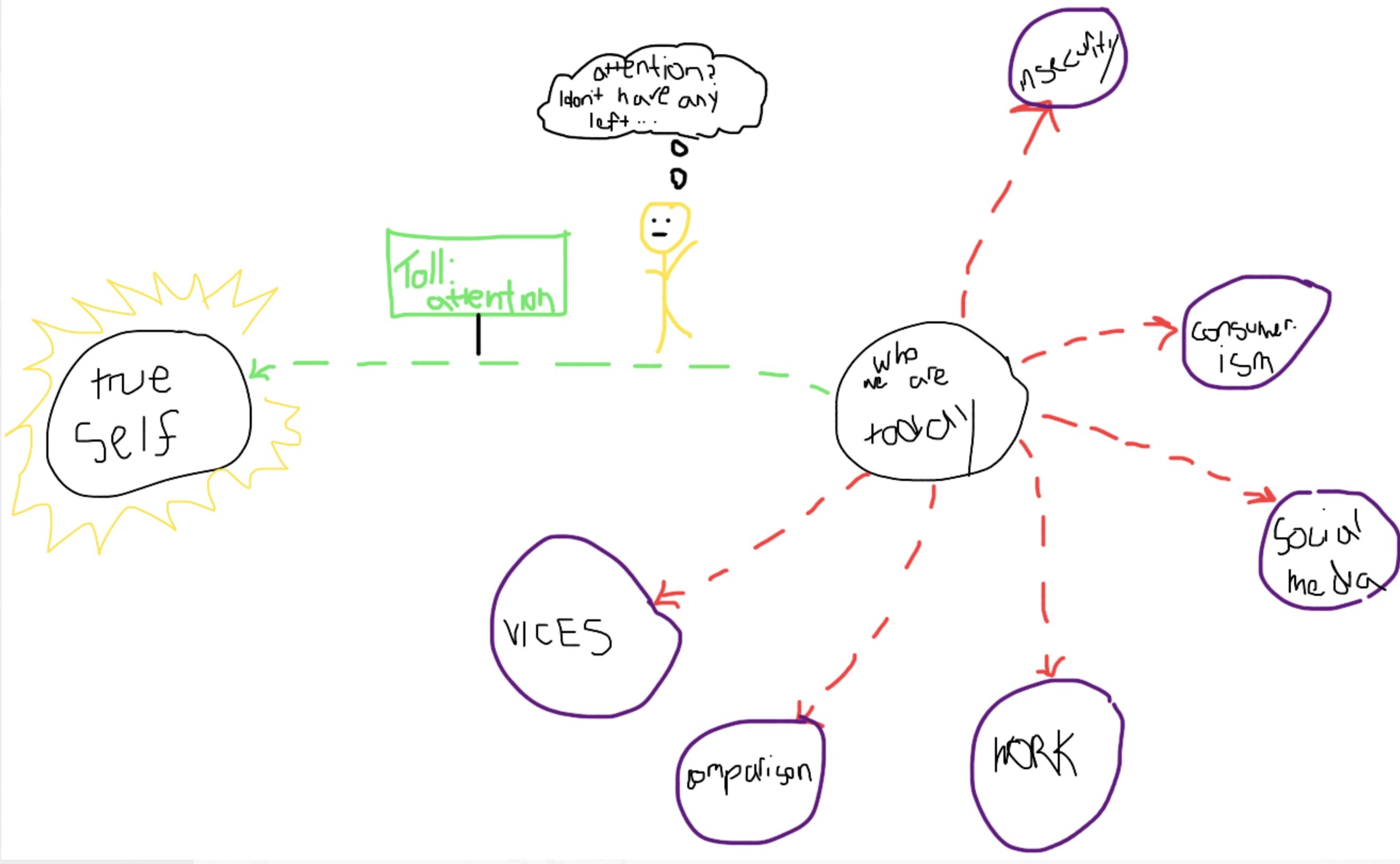 Society is designed for us to iron out the parts of ourselves that are different. We live in a world where conformity is not only a norm, but an expectation. To resist it, you need to literally convince yourself to be yourself - every single day. This is hard to do, because it takes consistent, active effort, which requires attention. But the world is a vacuum designed to suck up our attention from the moment our eyes flutter open in the morning.